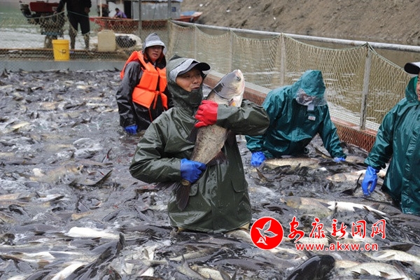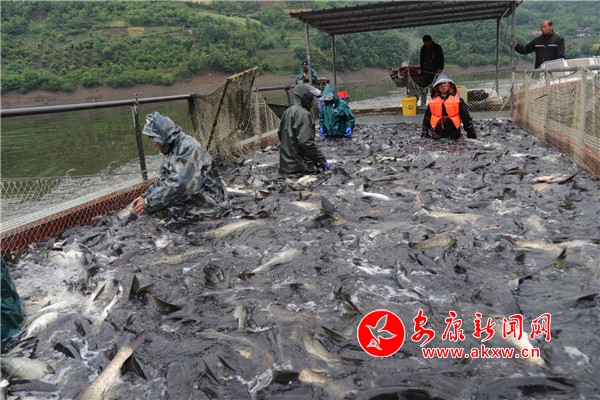 2018年,嵐皋縣嵐翠湖生態漁業開發有限公司利用藺河庫區6500余畝水面,探索發展大水面生態漁業,實施“人放天養”、集中捕撈,取得了保護水質、生態富民的環境效益雙贏,初步實現了“以水養魚、以魚凈水”的良性循環。該公司總經理李強告訴記者,同樣大小的魚苗同樣方式養到同樣重,外邊有些地方只需要四五個月,而我們這兒需要八九個月,但是我們的魚品質上乘。公司負責人周偉介紹,大水面放養的魚好賣,幾萬斤魚到了成都水產批發市場被商家一搶而空,都夸贊嵐皋的魚好,肉質鮮美,好吃夠味,生態自然。