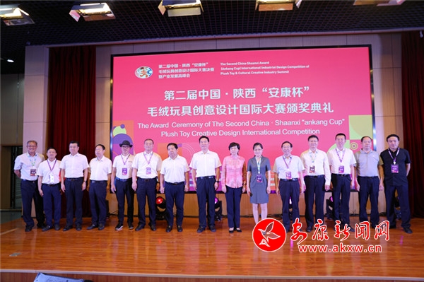 本網(wǎng)訊(記者 艾蓓)6月10日,由陜西省委宣傳部指導(dǎo),安康市人民政府和省人力資源和社會(huì)保障廳聯(lián)合舉辦的第二屆中國(guó)•陜西“安康杯”毛絨玩具創(chuàng)意設(shè)計(jì)國(guó)際大賽決賽及頒獎(jiǎng)典禮在陜西科技大學(xué)西安校區(qū)舉行,60件毛絨玩具新銳設(shè)計(jì)作品驚艷亮相。市長(zhǎng)趙俊民、人社部職業(yè)能力建設(shè)司副司長(zhǎng)朱利民、省委宣傳部副部長(zhǎng)柯昌萬(wàn)、陜西科技大學(xué)黨委書(shū)記姚書(shū)志、中國(guó)玩具和嬰童用品協(xié)會(huì)會(huì)長(zhǎng)梁梅、市人大常委會(huì)副主任陳倫寶出席活動(dòng)。省人力資源和社會(huì)保障廳副廳長(zhǎng)井海濱、陜西科技大學(xué)校長(zhǎng)李志健,安康市委常委、常務(wù)副市長(zhǎng)高晶華分別致辭。進(jìn)入決賽的作品創(chuàng)作者、相關(guān)單位代表、高校師生共千余人參加了決賽和頒獎(jiǎng)典禮。