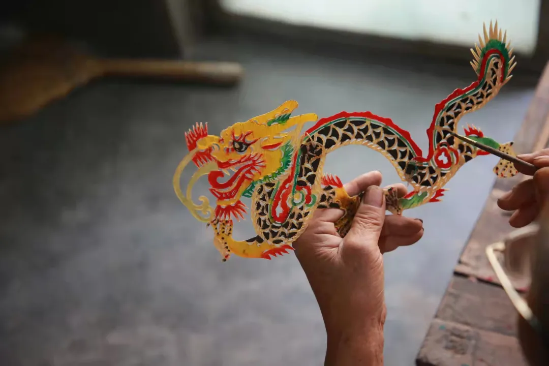 “雕刻一張皮影,從選皮制皮、描稿走刀到染色組裝,要經過二十多道制作工序,最快也得3天時間。冬天天氣冷時,一件影人做成需要1個月的時間。”說完,唐章根從一個老木箱子里拿出一張皮影,各類道情劇目所用到的人物、動物、布景,形形色色、林林總總都印在他腦子里。