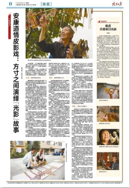 10月31日,《陜西日報》8版“縱覽”欄目就“安康道情皮影”非遺保護項目進行了專題報道,對“安康道情皮影”這一優秀地方非物質文化遺產項目及漢濱區在非遺項目保護、傳承方面工作具體做法進行了介紹,受到了社會各界的廣泛關注。今天,我們對報道進行轉發,希望更多的朋友關注、守護我們寶貴的地方非物質文化遺產,傳承延續地方文脈和人文精神。