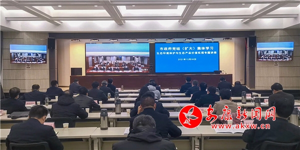 本網訊(記者 吳單 通訊員 靳琰)12月30日晚,市政府黨組開展生態環境保護與生態產品價值實現專題學習。市政府黨組書記、市長武文罡主持會議并講話。市政府黨組成員,市政府有關工作部門主要負責同志,市政府辦公室副縣級以上領導干部參加專題學習。各縣(市、區)政府班子成員及部門負責同志以視頻形式參加學習。