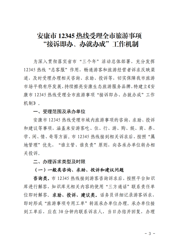 安康市12345熱線受理全市旅游事項“接訴即辦、辦就辦成”工作機制