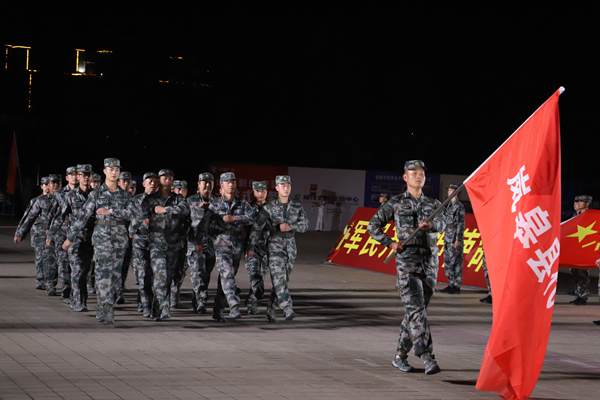 開幕式開始,縣區組、行業組等19個退役軍人代表隊邁著矯健的步伐入場,觀眾以熱烈的掌聲歡迎他們的到來。