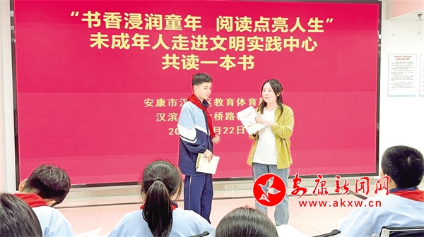 4月22日,漢濱初中大橋路校區學生走進漢濱區新時代文明實踐中心,開展“書香浸潤童年,閱讀點亮人生”共讀一本書活動。吳亞君 攝
