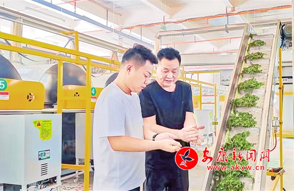 井泉茶業(yè)公司在廣佛鎮(zhèn)剛剛建成的初制茶加工廠一片忙碌,正在運(yùn)轉(zhuǎn)的機(jī)械上,一片片茶鮮葉隨著履帶高低起伏,空氣中彌漫著濃郁的茶香,經(jīng)過殺青、揉捻、干燥等工序后,收購來的茶青就蛻變成了色綠、香郁、味醇的初制干毛茶。