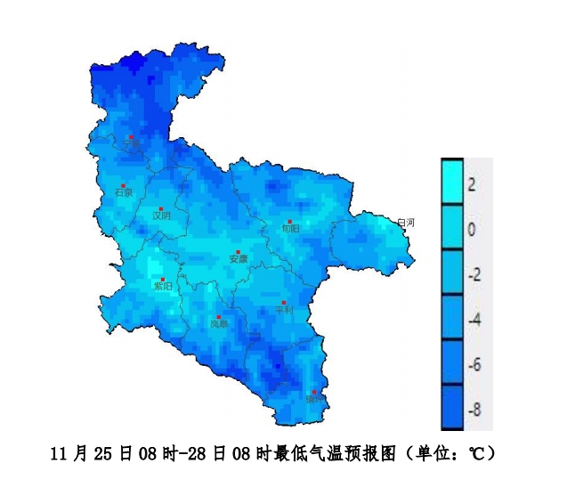 本網訊 11月22日9時,安康市氣象臺發布《重要天氣報告》,根據最新氣象觀測資料和數值模式分析,預計11月23—24日我市有小雨,南部局地中雨,其中24日夜間至25日清晨高山地區部分地方有雨夾雪或小到中雪,最大積雪深度2~5cm。受較強冷空氣和輻射降溫影響,25—27日最低氣溫下降顯著,預計日最低氣溫出現在11月27日清晨,川道地區-3~1℃,高山地區-8~-3℃。25—27日我市有3~4級吹風天氣,陣風6級以上。Wa2安康新聞網