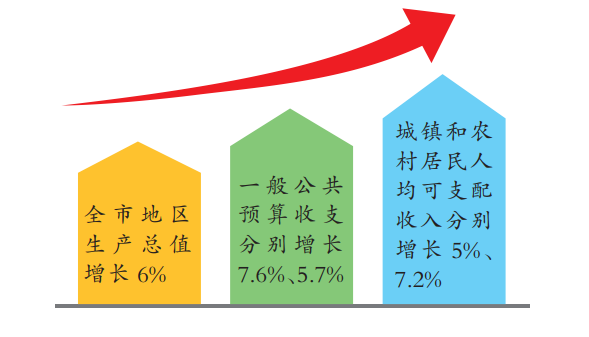 地區生產總值增長5.5%,固定資產投資增長5.5%,規上工業增加值增長10%,社會消費品零售總額增長6%,一般公共預算收入增長6%,城鎮和農村居民人均可支配收入增長5%、6%,城鎮新增就業1.9萬人,城鎮調查失業率5.5%以內。