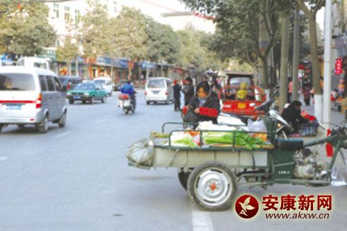 當街停放的水果車讓這條本就繁忙的街道一下子擁擠不堪安康新網訊 記者 潘潤生 文圖:1月3日,市民葉師傅打進熱線稱,年關將近金橋路(中心醫院后門至大橋路)的馬……
