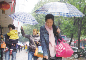 安康新網訊(安康日報)通訊員 王琳 記者 潘潤生 文/圖:“昨天30多度穿短袖,今天出門得穿夾克!”在安康金州路逛街的陳女士一手撐著傘,一手收緊大衣領口告訴記……