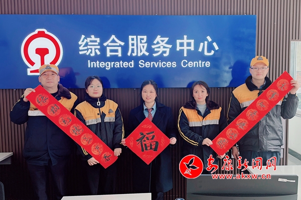 Wfj安康新聞網 圖為該站職工在貨運綜合服務中心向全國人民送上新春祝福Wfj安康新聞網
