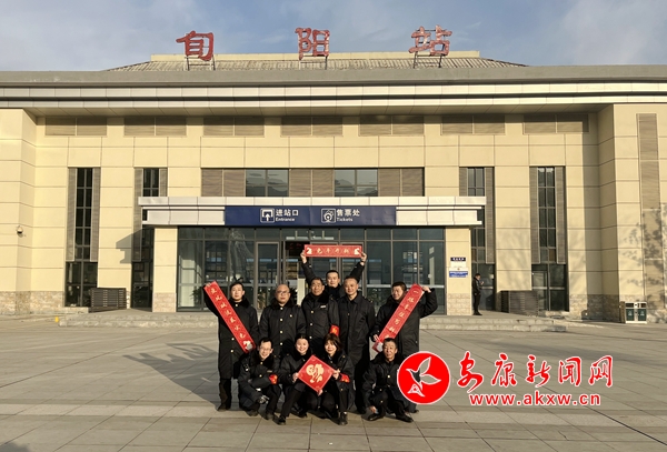 Wfj安康新聞網 圖為該站職工在旬陽站站前廣場向全國人民送上新春祝福Wfj安康新聞網