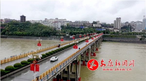 隨著節(jié)日的臨近,安康城區(qū)大街小巷節(jié)日氣氛不斷升溫,新安裝的漢江一橋燈桿上的五星紅旗一字排開(kāi)迎風(fēng)招展、鮮艷奪目,莊嚴(yán)隆重的氣息撲面而來(lái)。站在江南老城堤上俯瞰車水馬龍的街道,美麗的綠化與鮮紅的國(guó)旗交相輝映,構(gòu)建出一幅熱烈和諧的城市景觀圖。