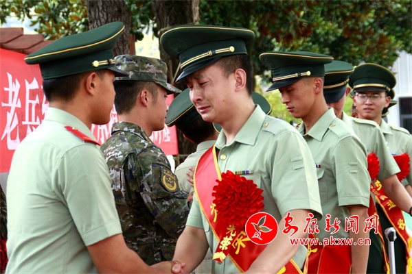 一雙雙緊握的手、一個個深情的擁抱,伴隨著悠揚的音樂,在送行的人群中我們看到了戰友們緊緊相擁,你一言、我一語,無一不訴說著戰友之間無限的眷戀。看著即將分別的戰友,官兵們再也控制不住內心的情感,眼中的淚水如斷線的珠子不斷滑落。這不僅是對軍營生活的留念,更是對軍旅青春的不舍。