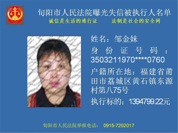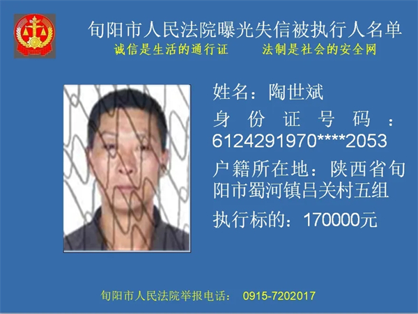 曝光失信 | 旬陽法院發布2024年第一期失信被執行人名單