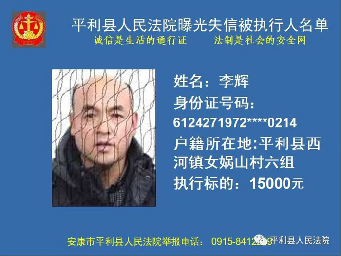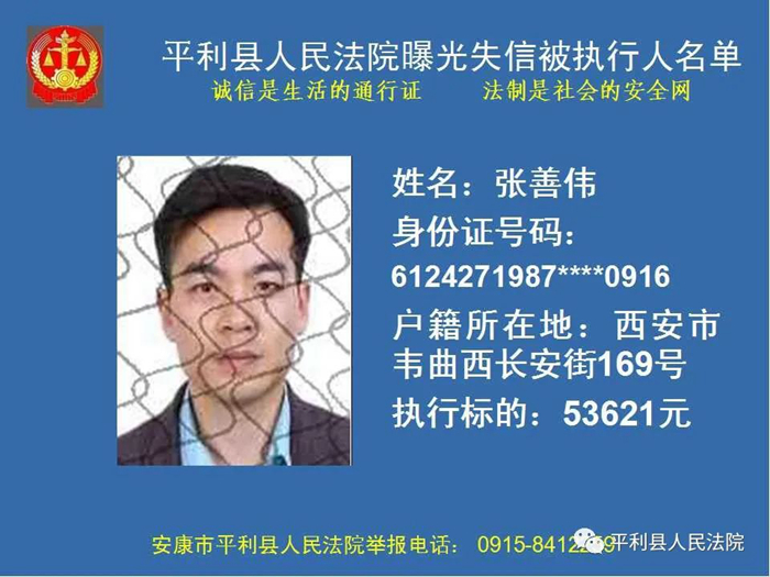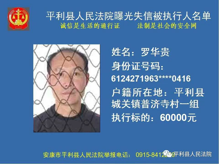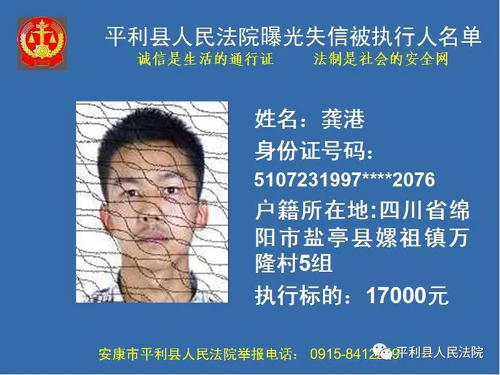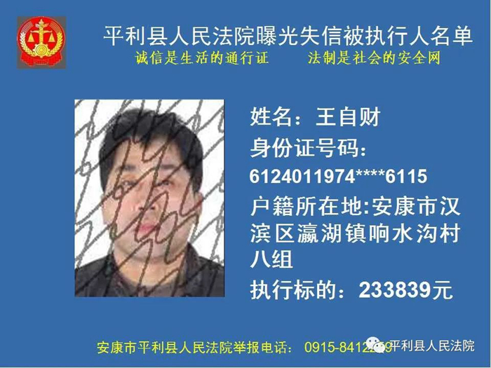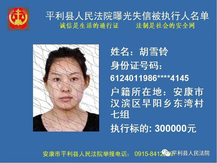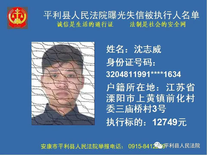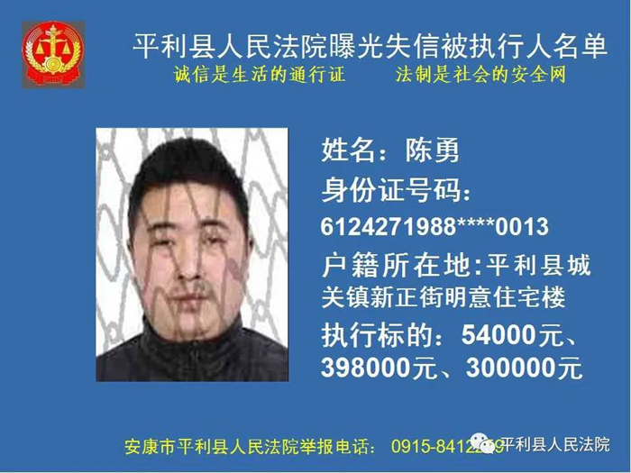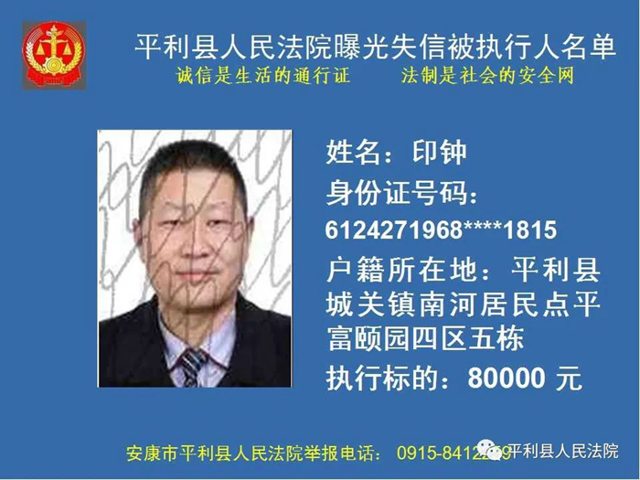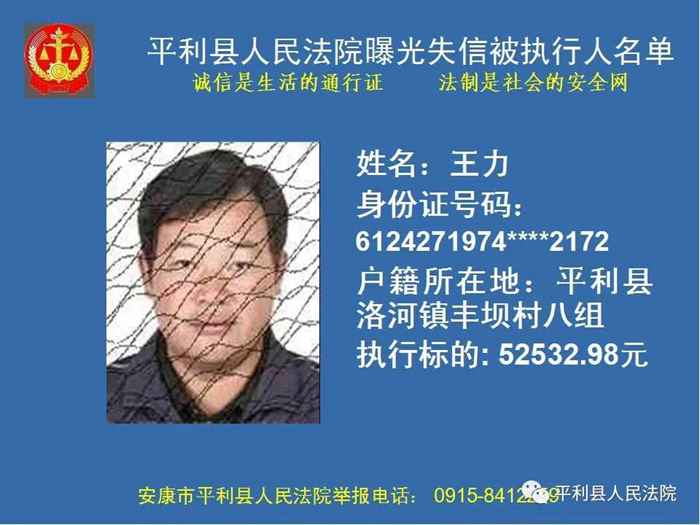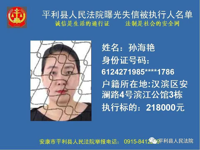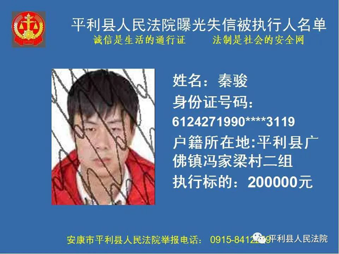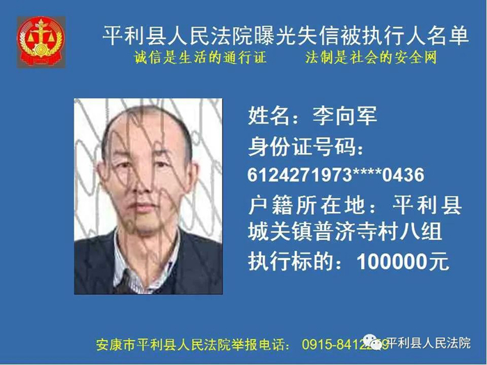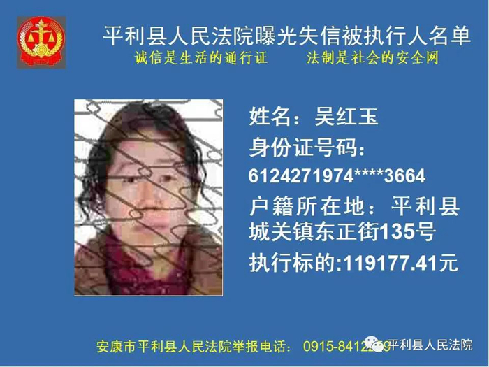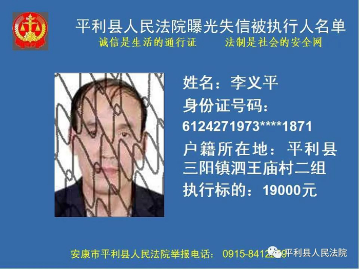 曝光失信 | 平利縣人民法院曝光失信被執行人名單(2022年第一、二季度)