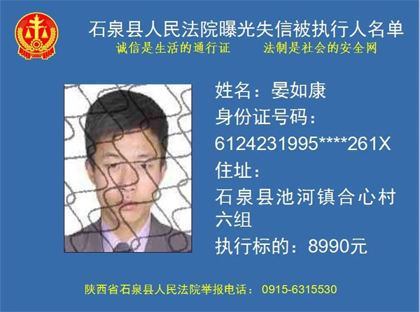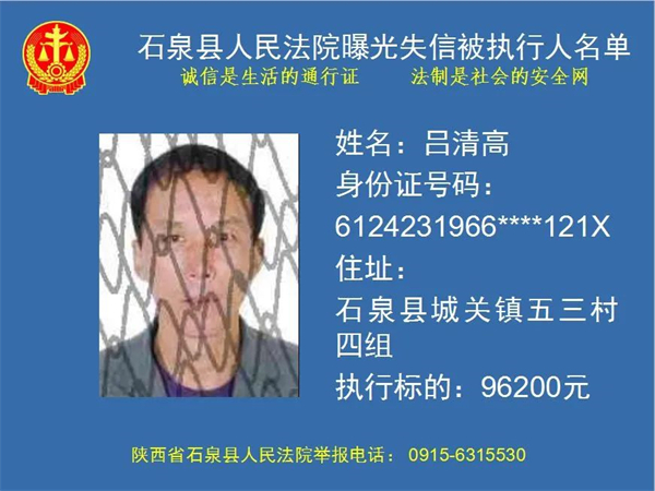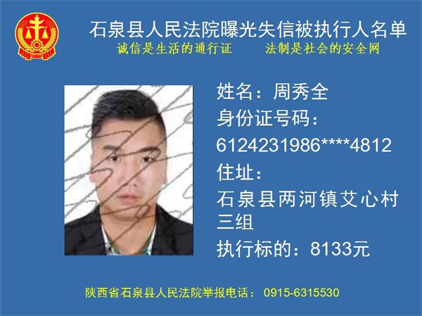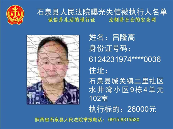 曝光失信 | 石泉縣人民法院曝光失信被執行人名單!(2022年第五期)