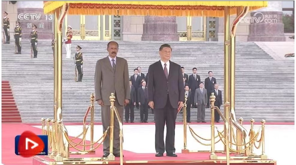 央視網消息(新聞聯播):國家主席習近平15日下午在人民大會堂東門外廣場舉行儀式,歡迎厄立特里亞國總統伊薩亞斯·阿費沃基對我國進行國事訪問。