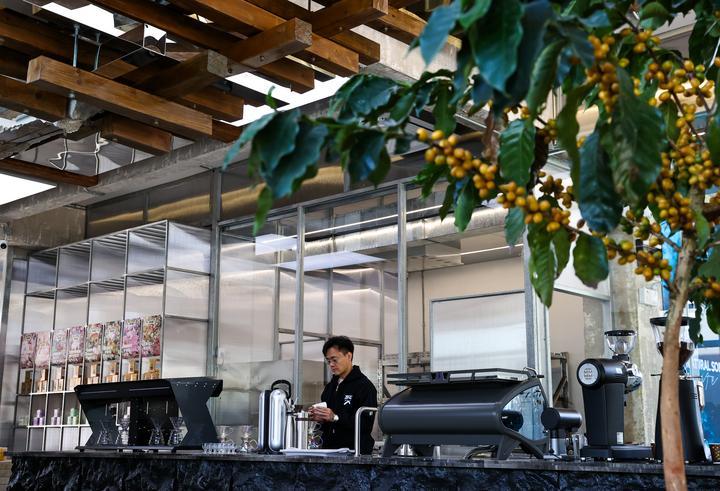 2025年12月10日,旅居云南的韓君瑋在位于昆明的南來盛咖啡店內制作咖啡。韓君瑋自清華大學畢業后,已在咖啡行業耕耘十余年。2024年,他受聘成為云南一家老字號咖啡品牌的品牌總顧問,從此投身到云南咖啡的產品研發和品牌推廣工作中。一年多來,他每月都會來到昆明,短則幾天,長則數周,開啟了一種“半旅居、半工作”的生活模式。“云南風景優美、氣候宜人,我很享受這樣的狀態。”韓君瑋說。