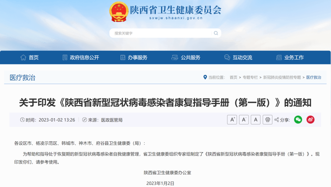 為幫助和指導處于恢復期的新型冠狀病毒感染者自我健康管理,省衛生健康委組織專家組制定了《陜西省新型冠狀病毒感染者康復指導手冊(第一版)》。