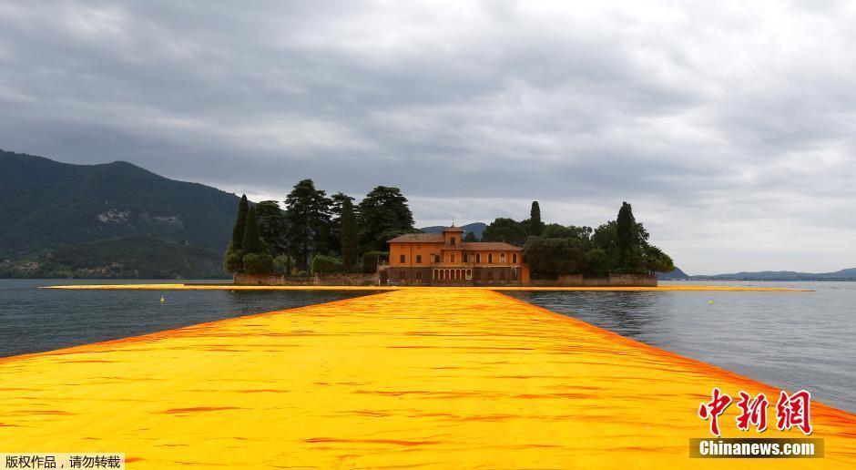 意大利湖面建“黃金大道” 直通湖心島