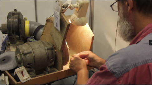 一位波蘭技師正用機器磨具磨制一塊琥珀原石。人民網(wǎng)記者 暨佩娟攝