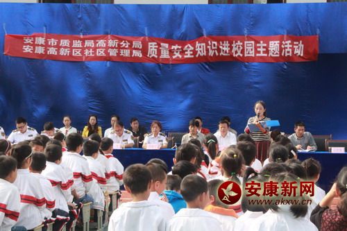 安康新網訊 (通訊員 周秋)9月30日,高新區質量安全知識進校園主題活動在聯合小學舉行,該活動由市質監局高新分局和高新區社區管理局舉辦。全校500多名師生和來自全區16所中小學及幼兒園的安全專干參加了活動。在互動中,同學們熱情高漲,舉手搶答問題。fpa安康新聞網 fpa安康新聞網 fpa安康新聞網 活動現場