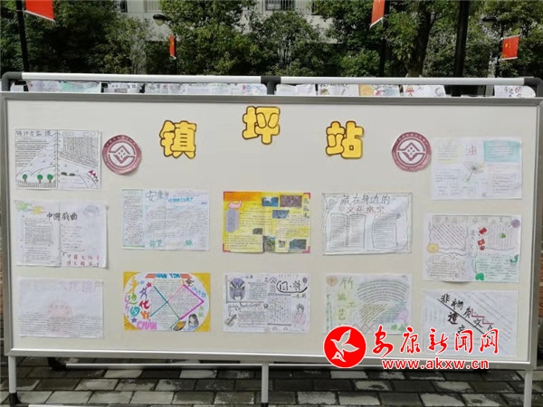 此次展板按地域文化特色,分為漢濱區站、旬陽平利站、漢陰石泉站、鎮坪站、紫嵐寧站五大板塊。每一張手抄報,從設計到排版,從書寫到繪畫,都各具特色:這里面有對壯美河山的贊美,有對雄偉建筑的欽佩,有對安康區縣奇觀異景、民俗文化的自豪……圖文并茂的手抄報吸引了全校師生駐足觀賞,嘖嘖稱贊,更有學生拿著紙筆認真地做記錄。