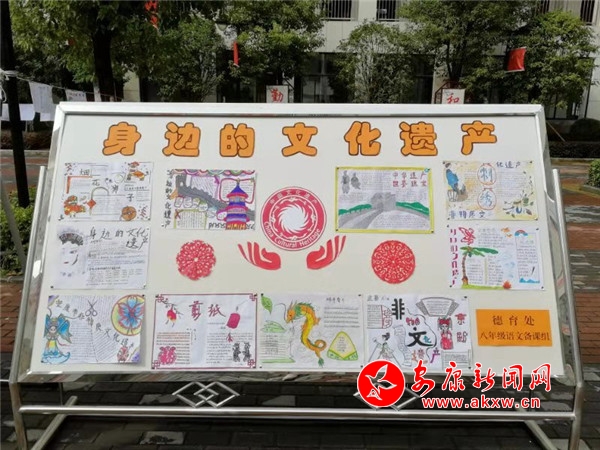 本網訊 為進一步加強我國文化遺產的保護,繼承和弘揚中華民族優秀傳統文化,增強學生的民族自信心和自豪感,豐富校園文化生活,營造濃厚的學習氣氛,充分展示學生風采,培養學生動手創新能力,漢濱初中高新校區德育處協同初二年級語文備課組利用國慶假期舉辦了以“探尋文化遺產,弘揚民族文化”為主題的手抄報活動。10月12日,手抄報展板順利展出。
