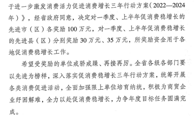 12月19日,陜西省商務(wù)廳通報(bào)了2022年促消費(fèi)穩(wěn)增長(zhǎng)先進(jìn)市(區(qū))和先進(jìn)(區(qū)),漢濱區(qū)獲評(píng)“上半年促消費(fèi)穩(wěn)增長(zhǎng)先進(jìn)區(qū)”,獎(jiǎng)勵(lì)35萬(wàn)元。XLD安康新聞網(wǎng)