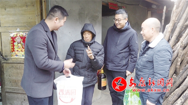 “過年好。恭喜發財!”“萬物呈祥榮盛世 九龍獻瑞慶良辰。這副對聯美得很。”“氣溫低,取暖注意安全。”漢濱區人社局派駐瀛湖鎮陽坡村第一書記李大林和村黨支部書記晏真云一路邊和鄉親們打著招呼、送去祝福,邊叮囑著冬季取暖安全和森林防火等相關注意事項,兩人徑直走到了村民晏世全家中。