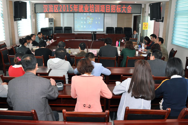 4月14日上午,漢濱區人社局舉行2015年就業培訓項目投標大會,此次投標大會共有安邦、華聯等12所職業培訓學校參加,涉及專業30個4200人。投標大會在監察局工作人員……