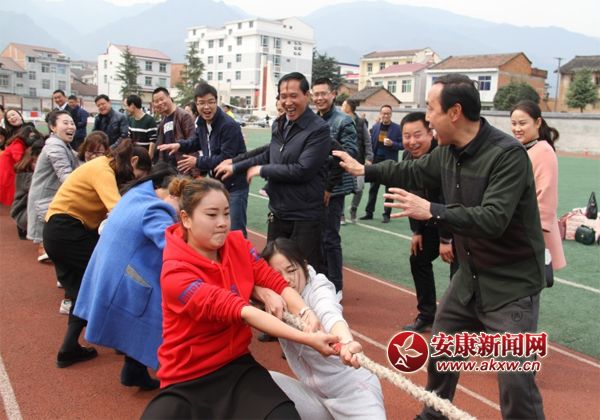 趣味游戲活動從早上9時開始,跳繩、踩氣球、雙腿夾球接力等九個趣味項目同時在操場上指定區域進行,最后的“女子拔河比賽”、“男女混合籃球賽”把慶祝活動推向了高潮。3bL安康新聞網
