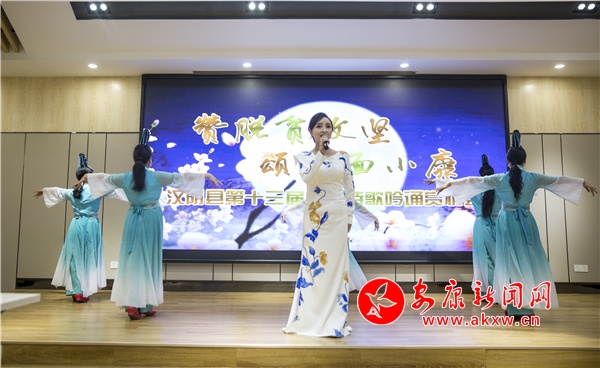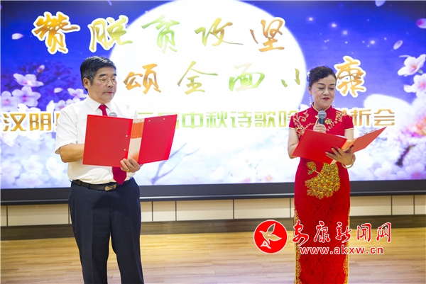 “2021年,中秋月圓。輝映漢陰三山兩川,照亮龍鳳福地的千家萬戶,靚麗大地心愿,同寫共譜新時代藍圖,激情擁抱明天……”伴隨著動聽樂聲,一首首飽含情感的詩歌宛轉悠揚。文學愛好者先后登臺吟誦《大地圓夢 中秋月圓》《梁家河》《創意的三沈文化產業園》《失眠的青年》《月亮的另一面》《漢陰大事狀》《又是一個中秋夜》《中秋月圓 家鄉夢圓》等原創詩作,激情演繹《燈火里的中國》《明月幾時有》《把一切獻給黨》等歌舞表演。一個個精彩的節目讓現場充滿了掌聲歡笑聲,其情美美,其樂融融。活動內容豐富,既有詩歌朗誦,又有歌舞表演和即興作詩,充分展現了漢陰厚重的歷史文化和漢陰人的文化自信,也從側面體現了漢陰文人的創作熱情。