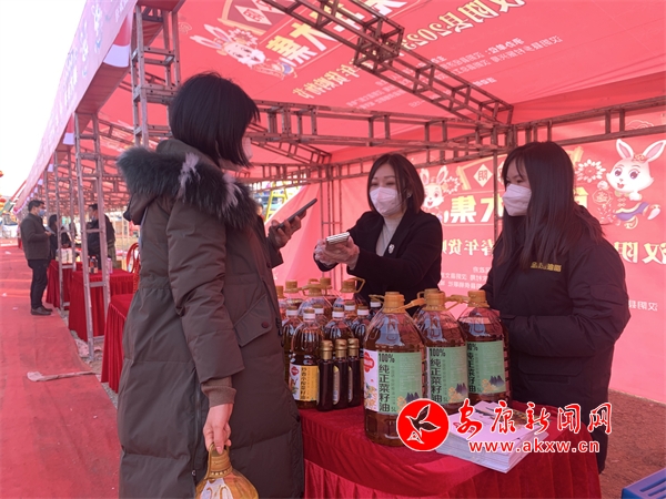 活動現場,伴隨著喜慶的音樂聲,攤位上擺滿了各種各樣的年貨,洋溢著濃濃的年味。市民們穿梭其中,漢陰炕炕饃、漢陽蒸盆子、純正菜籽油、臘肉和香腸、年節飾品等60余種商品齊聚這里,吸引著過往消費者駐足品嘗、選購。