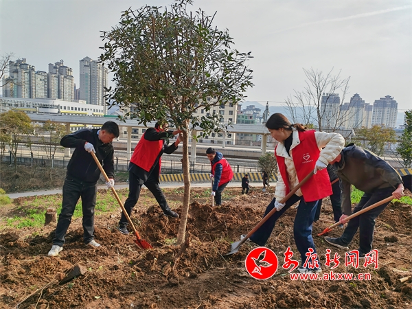 本網訊(通訊員 儲毅)春和景明,3月12日上午,在漢陰縣城關鎮中堰村五線橋植樹現場,漢陰縣水利局30余名黨員干部正忙于挖坑、扶苗、培土、踩實、澆水……經過一個上午的緊張勞動,一棵棵桂花樹植綠在道路兩側迎風招展,展露出勃勃生機。