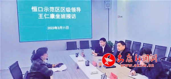 恒口示范區黨工委副書記、管委會主任王仁康接訪群眾。