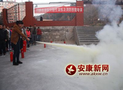 學生學習使用滅火器學生撤離隨著信號員三聲急促的哨音,各宿舍舍長立即發布了準備撤離的命令,只見各宿舍快速有序地打開宿舍門,各宿舍值班宿管員迅速打開宿舍大……