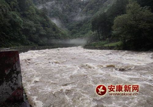 寧陜:遇新一輪強降雨 河道水位大幅上升