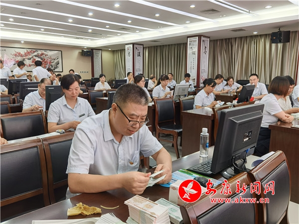 據了解,此次比賽設置了翻打百張傳票、字符錄入和手工點鈔、業務知識競賽四個項目。在翻打百張傳票和漢字錄入環節,選手們靈巧的雙手在計算器和鍵盤上游走,伴隨著“噼里啪啦”敲擊聲,只見一個個數字答案輸入考試系統,一行行字符在電腦屏幕上快速跳動。在點鈔比賽中,選手們單指單張、多指多張等多種點鈔手法各顯風采,清點、墩齊、扎把、蓋章,每個步驟都環環相扣,一絲不茍,嫻熟的手法讓人目不暇接,印象深刻。