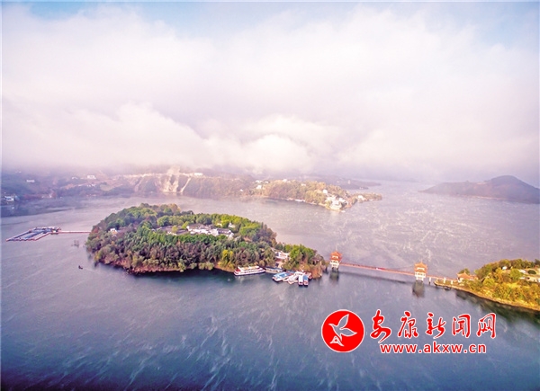 初冬的清晨,瀛湖風姿綽約、曼妙無比。起初湖水像是受熱不均的沸水,這里一點,那里一塊冒著熱騰騰的青煙,如絲如縷,在水面上輕盈地飄動、游離、撕扯,如慵懶自在的白云,把天空、湖水襯托得更藍。漸漸地,煙嵐越來越濃,越來越多,像化不開的乳汁,最后整個湖面煙波浩渺,小船和遠山若隱若現,似人間童話仙境。這樣的山圍繞著這樣的水,這樣的水倒映著這樣的山,再加上湖中帆影點點,白鷺行行,小島林立,魚群結對,有種人在畫中游的感覺。深冬,總會落一兩場雪。那雪,極富層次。山下,素雪輕薄覆蓋;山上銀裝素裹,玉潔冰清。湖水則咕嘟咕嘟冒著熱氣,白綠相配,分外醒目,似丹青妙手繪制的山水畫,又似巧手繡娘精繡的刺繡,美輪美奐,惹人愛憐。
