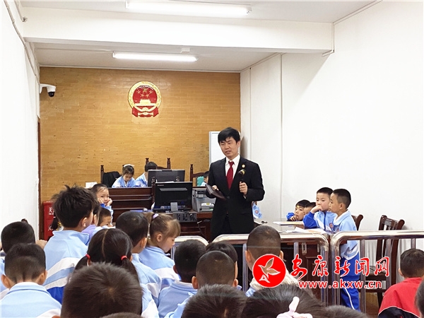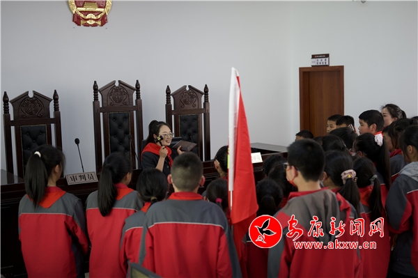 在參觀過程中,干警帶領同學們走進訴訟服務中心和干警辦公室了解了法院干警的工作場所。隨后,帶領同學們參觀審判庭,現場向同學們介紹科技審判法庭的功能及庭審流程,并展示了法袍、法槌和法徽,同時用深入淺出的語言和提問互動的方式向孩子們講解了法袍、法槌和法徽的象征意義,同學們興趣濃厚,紛紛走上審判臺,親身感受和觸摸審判設施,感受法庭審判的嚴肅和莊重。TDk安康新聞網