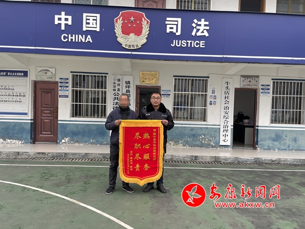 本網訊(通訊員 武勇)近日,貴州籍農民工楊某某在調解協議書上簽字后,滿臉笑容地向鎮坪縣牛頭店司法所工作人員送來了一面印有“盡職盡責 熱情服務”的錦旗,這面錦旗凝聚著群眾的信任與真情。