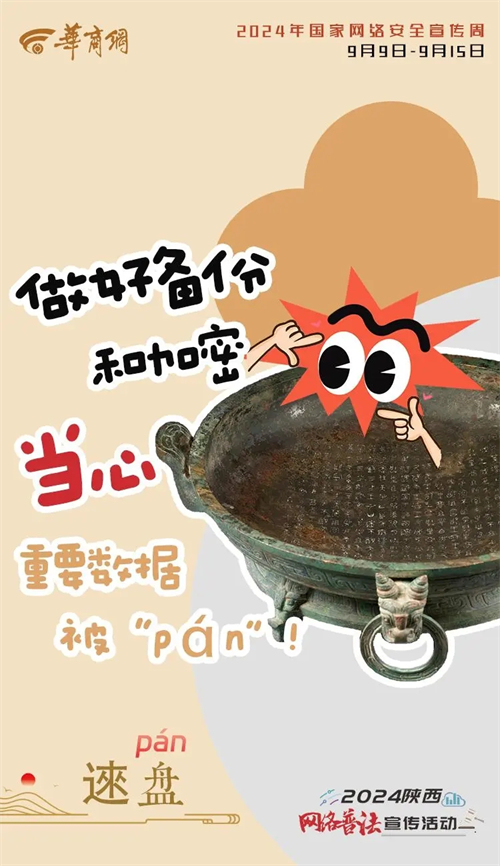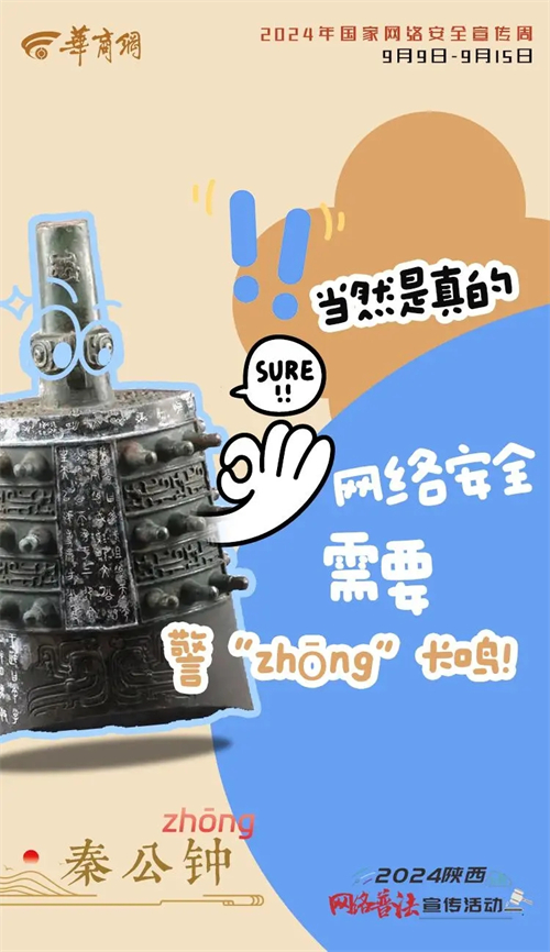 9月9日下午,陜西第十一屆國家網絡安全宣傳周將在寶雞市開幕。寶雞,曾出土無數青銅國寶,被譽為“青銅器之鄉”。今天“國寶”有話說,“點醒”你我他→