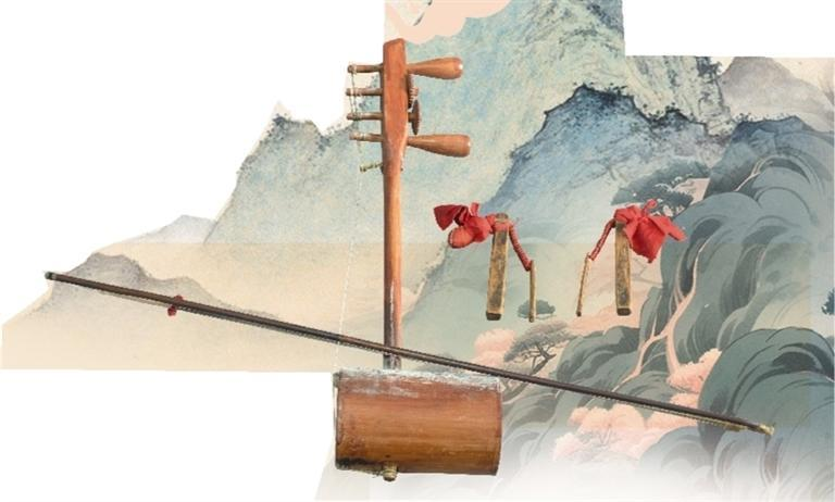 弦子腔表演時使用的弦胡和蓮花落。受訪者供圖