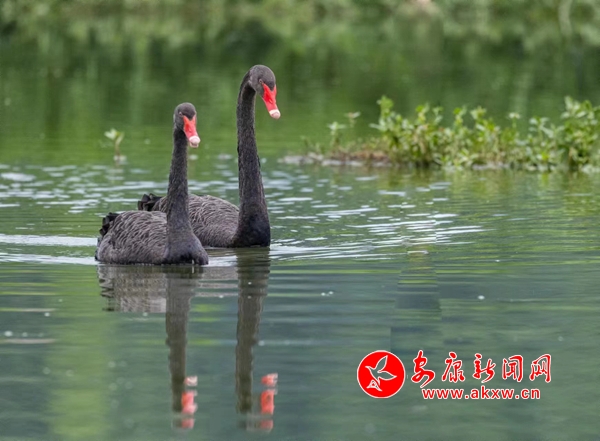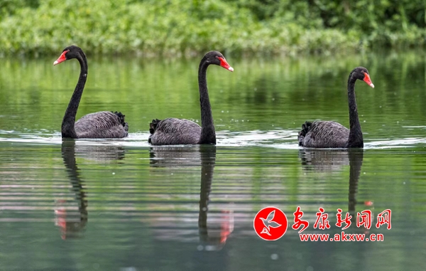 6月20日,漢陰縣雙乳鎮(zhèn)千畝荷塘迎來“稀客”——三只黑天鵝。優(yōu)雅的黑天鵝、碧綠的荷葉、粉紅的荷花組成了一幅美麗的畫面,吸引了很多人前來觀看、拍照。(通訊員 黃智發(fā) 賀珍珍)PFa安康新聞網