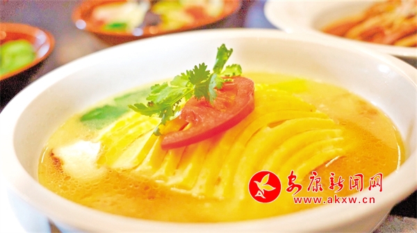 “黃如金、白如玉”正是描寫它的,色澤誘人,如藝術品一般散發光彩;香氣清新淡雅,似葷非葷,似素非素,令人垂涎欲滴;品嘗白河肉糕,輕咬一口,香滑軟嫩的口感瞬間充斥口腔,肥而不膩,筋道十足,既保留食材的原汁原味,又通過巧妙的搭配和烹飪技巧,使各種味道相互融合,達到了完美的平衡,形成其獨特的風味,令人回味無窮。