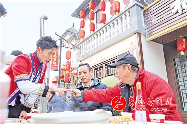 長街里的宴席上坐無缺席;一道道精美的庖湯佳肴陸續上場,席間,賓客們喝著美酒、品著美食、看著節目,歡聲笑語不斷。臺上的節目精彩紛呈,讓賓客們目不暇接,不時報以熱烈掌聲,充分展現了石泉縣深厚的文化底蘊和獨特的民俗文化。不少外地游客慕名而來,帶著親友來到石泉,親身感受特色庖湯宴。豪邁的秦巴漢子激情劃拳喝酒,在場的游客市民都沉浸在新年的喜悅中,舉杯暢飲,現場熱鬧非凡,滿滿年味十里香飄……Jgu安康新聞網